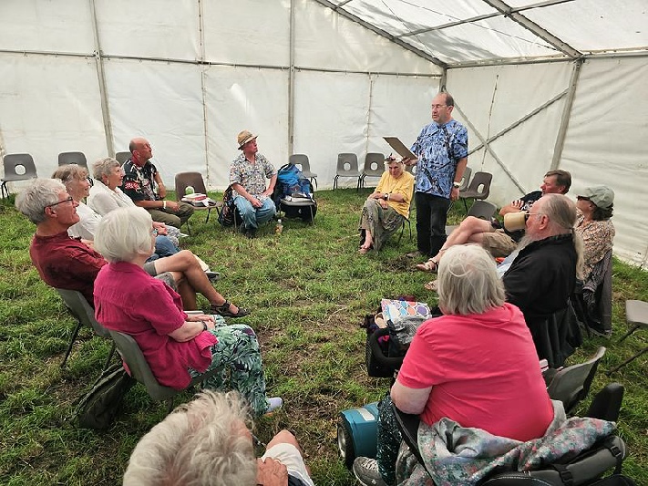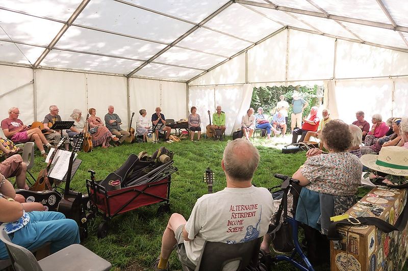 There is a separate tent for poetry, storytelling & singarounds hosted by Phil & Jane ((singarounds)
